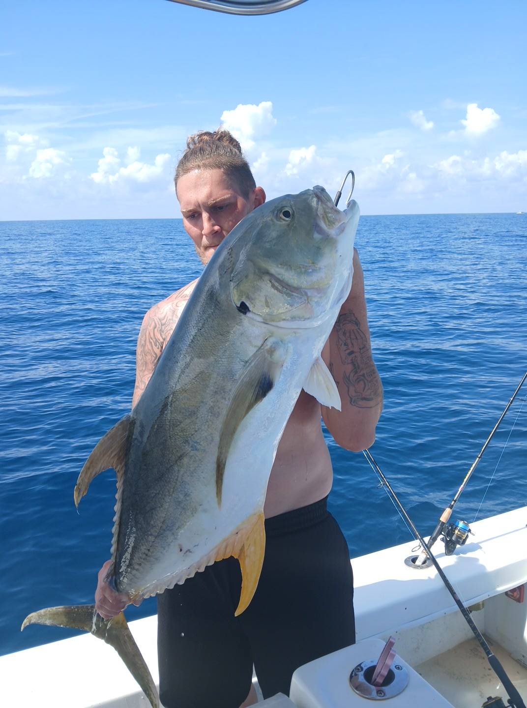 On our offshore trips, we typically target a mix of Mangrove Snapper, Lane Snapper, Amberjack, Cobia, and King Mackerel. Depending on the season and trip length, we may also encounter Barracuda or Sharks while bottom fishing or trolling the Atlantic reefs.